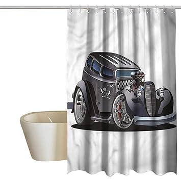Unique Shower Curtain Manly Decor Collection Cartoon Hot Rod Car
