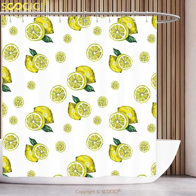 Cool Shower Curtain Modern Lemon Figures With Slices And Leaves