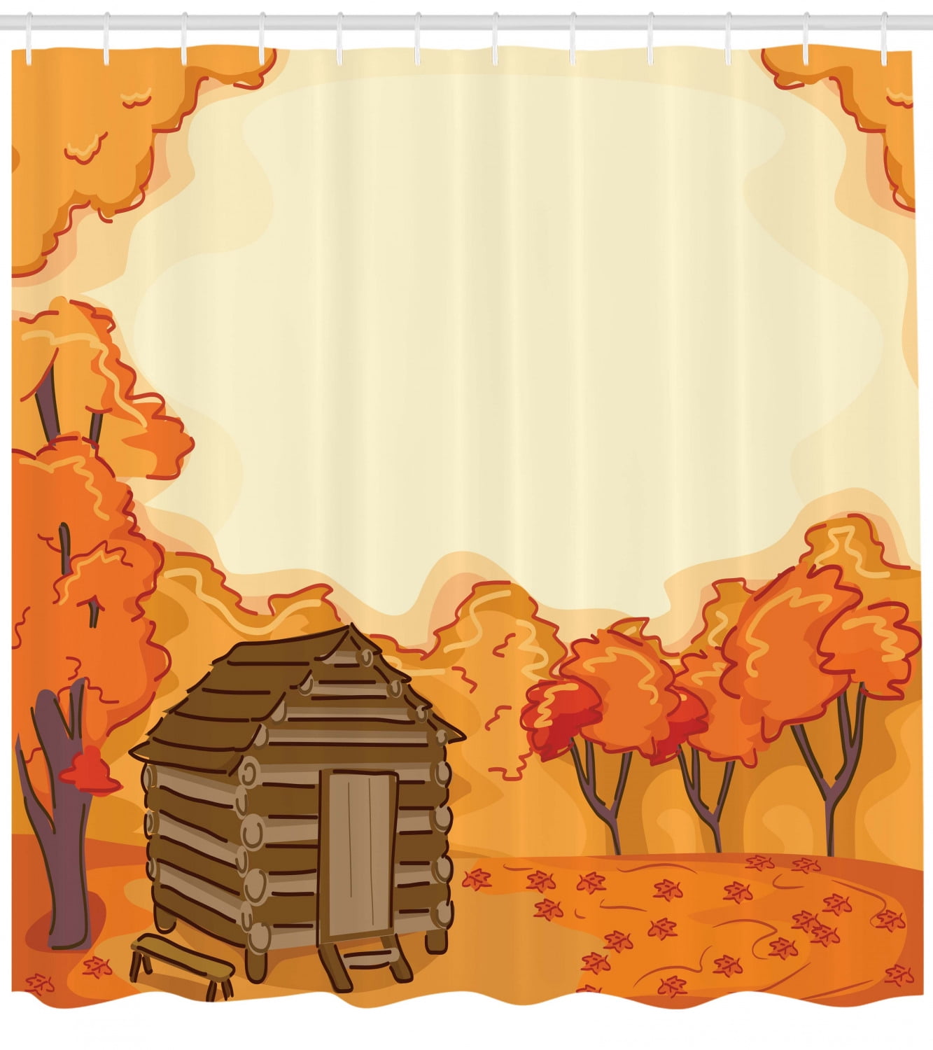 Log Cabin Shower Curtain Autumn Illustration Of A Old Rustic