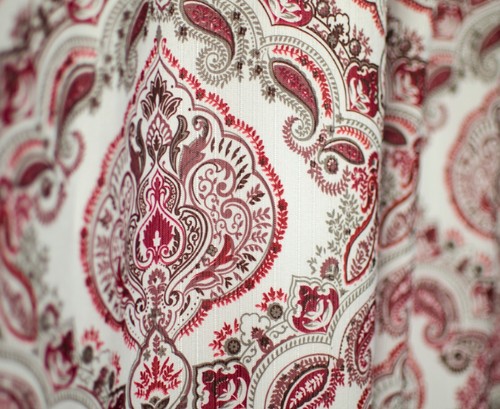 Linen Store Rose Fabric Bath Shower Curtain Burgundy Damask Red