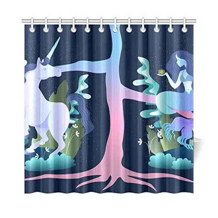Mkhert Unicorn And Mermaid Shower Curtain Waterproof Bath Curtain