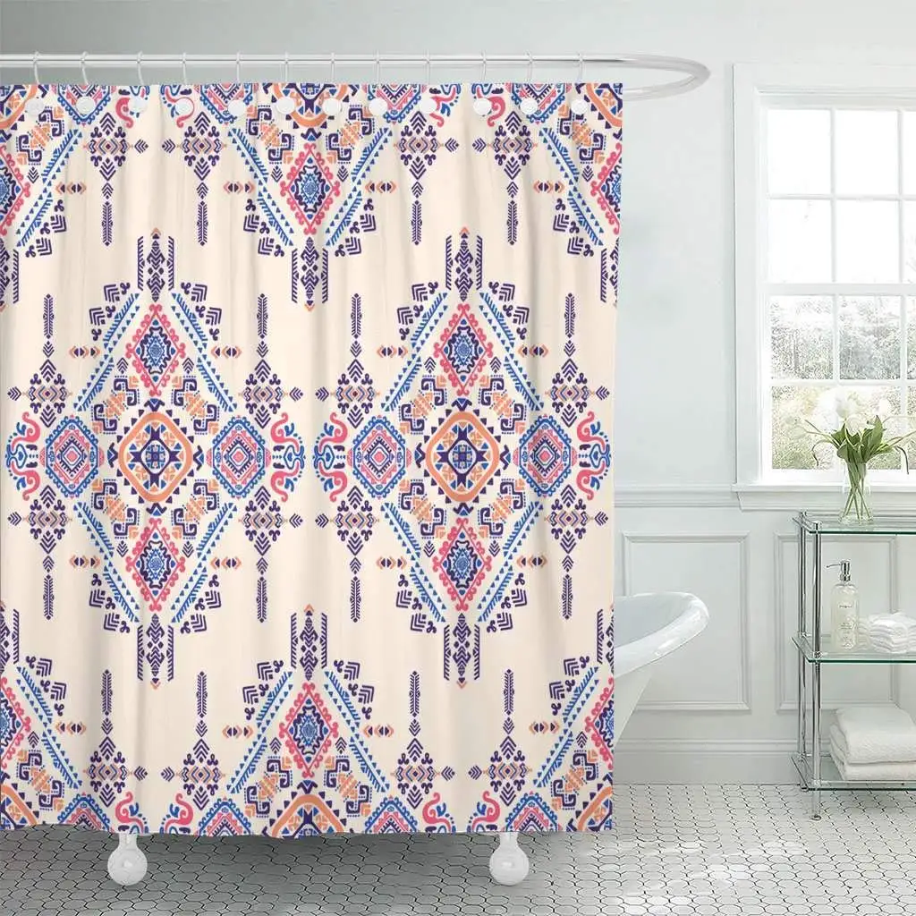 Shower Curtain With Hooks Geo Tribal Aztec Mexican Vintage Indian