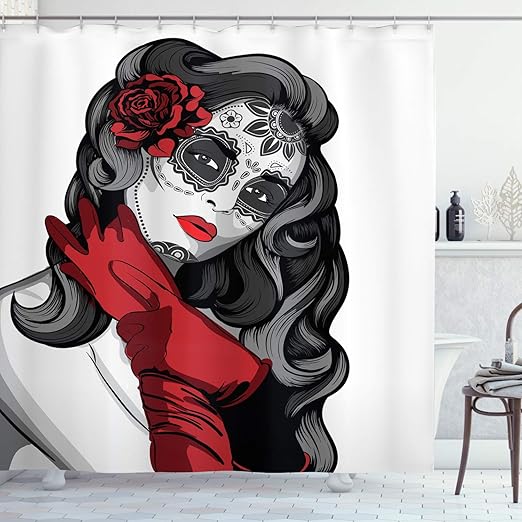Amazon Com Ambesonne Skull Shower Curtain Sugar Skull Lady With