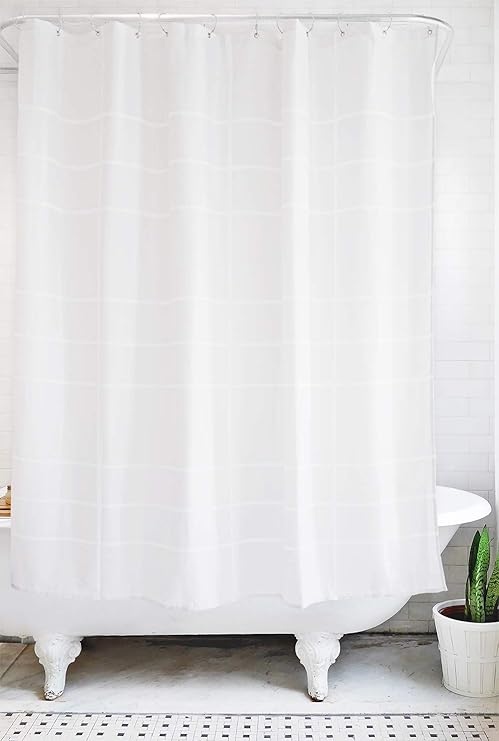 Amazon Com Bathage Modern Grid Pattern Fabric Shower Curtain