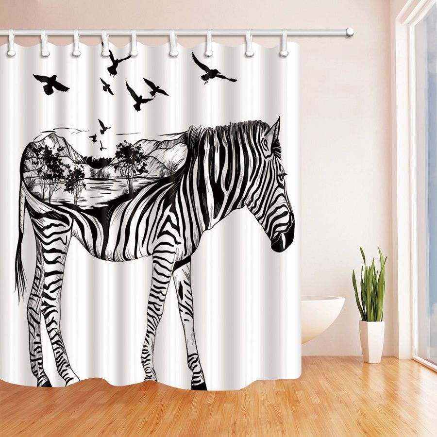 2020 Modern Zebra Cat Bath Waterproof Curtain 3d Polyester Fabric