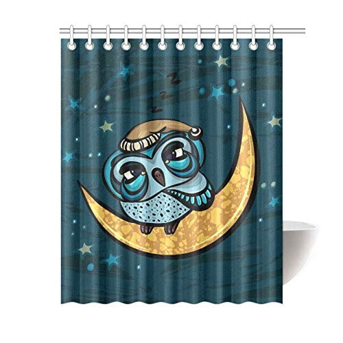 Mkhert Cartoon Sleepy Owl Shower Curtain Bath Curtain Waterproof