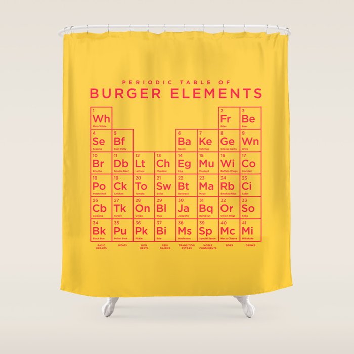 Periodic Table Of Burger Elements Yellow Shower Curtain By