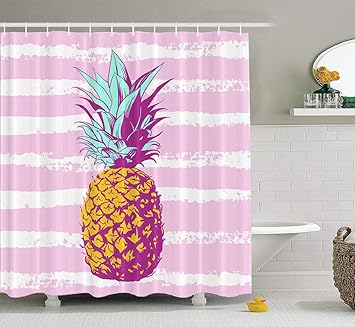 Amazon Com Ambesonne Pineapple Shower Curtain Pattern With