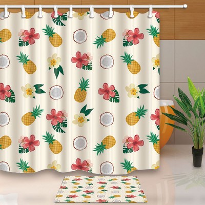 Coconut And Pineapple Shower Curtain Bathroom Waterproof Fabric