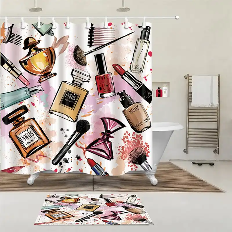 New Girly Shower Curtains Cosmetic Perfume And Lipstick Nail
