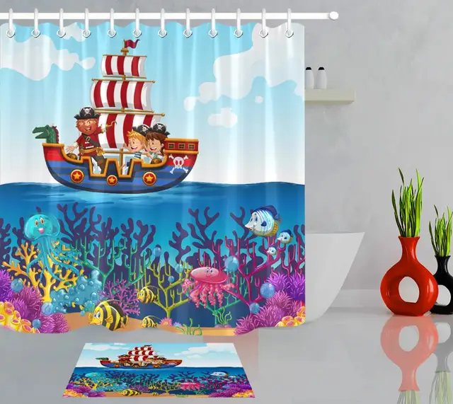 Online Shop Lb Pirate Ship Underwater World Shower Curtain