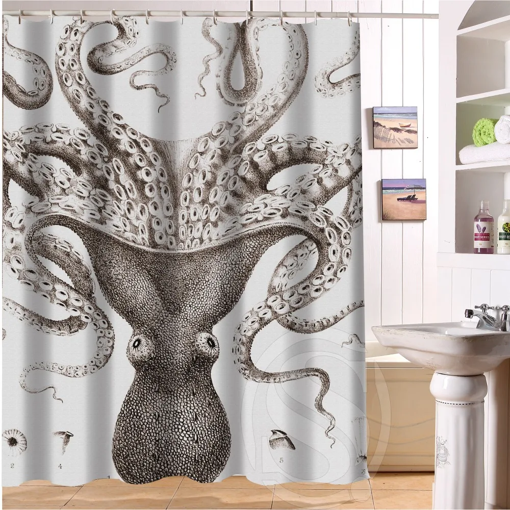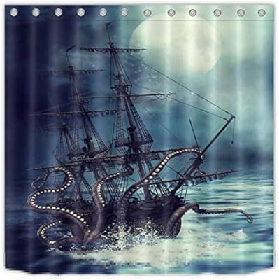 Fashion Waterproof Bath Curtains Popular Octopus Pirate Ship