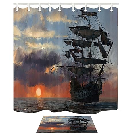 Mkhert Old Pirate Ship Shower Curtain Home Decor Bathroom Shower