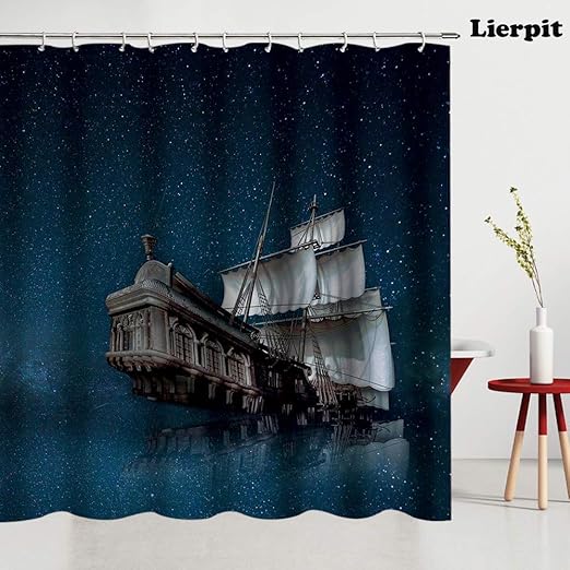 Amazon Com Lierpit Ship Shower Curtain Pirate Ship Flying In The