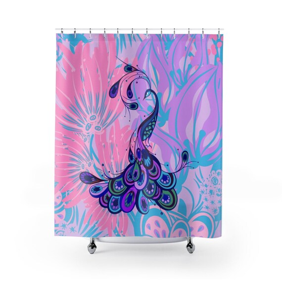 Floral Pink Peacock Shower Curtains Etsy