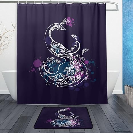 Amazon Com Alaza Set Of 2 Purple Peacock 60 X 72 Inches Shower