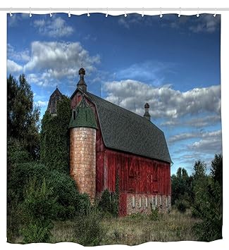 Amazon Com Ashasds Old Red Barn Shower Curtain Design Polyester
