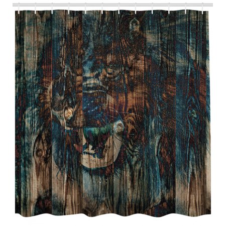 Safari Shower Curtain Wild African Animal Big Cat Lion Carved On