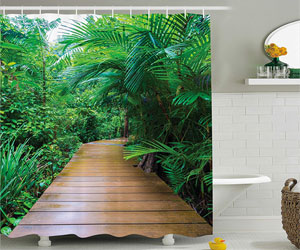 72 Tropical Dense Green Jungle Bathroom Fabric Shower Curtain