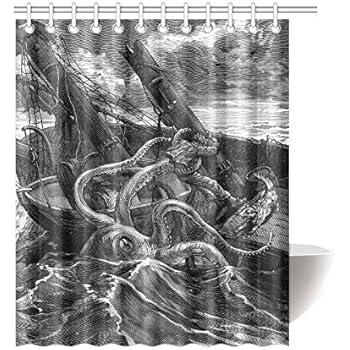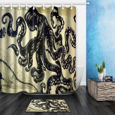 Custom Shower Curtain Sea Monster Kraken Octopus Waterproof Fabric