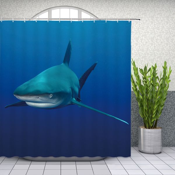 2020 Shark Shower Curtain Ocean Animal Bathroom Decor Waterproof