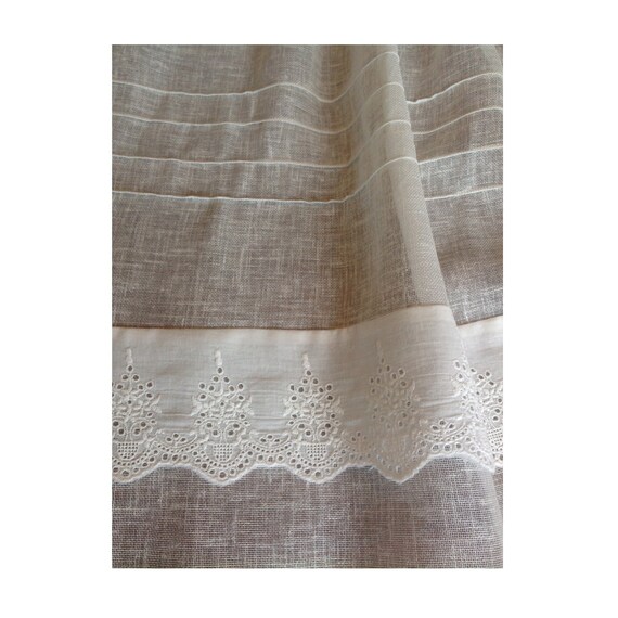 Ivory Linen Panel Sheer Lace Curtain Off White Net Curtain Etsy