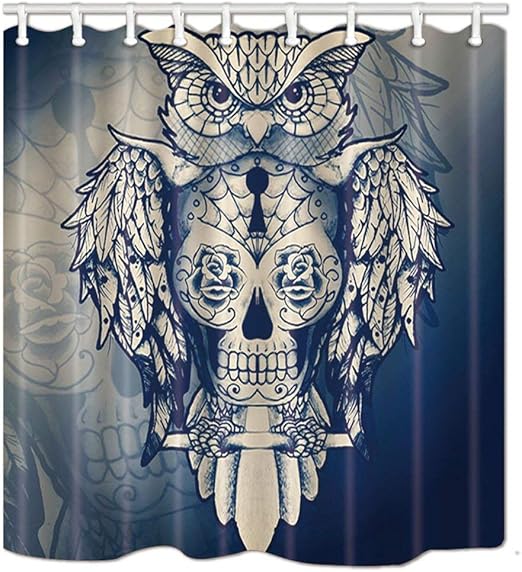 Nhmq Vintage Owl On Sugar Skull Shower Curtain Halloween