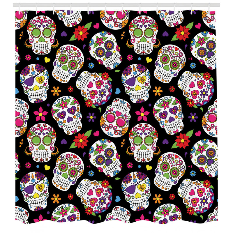 East Urban Home Sugar Skull Shower Curtain Set Hooks Wayfair
