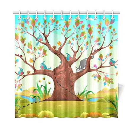 Mkhert Tree With Birds Shower Curtain Waterproof Bath Curtain