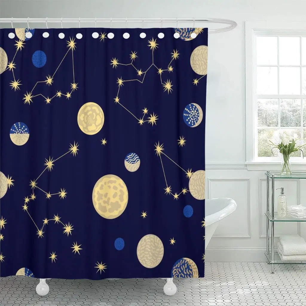 Celestial Pattern Print Bathroom Shower Curtain Grizzshop