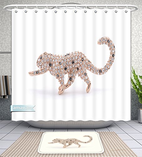 Amavam Bathroom 2 Piece Suit Brooch Leopard On A White Background