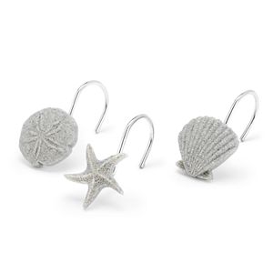 Coastal Shower Curtain Hooks Beach Embossed White Shells Bathroom