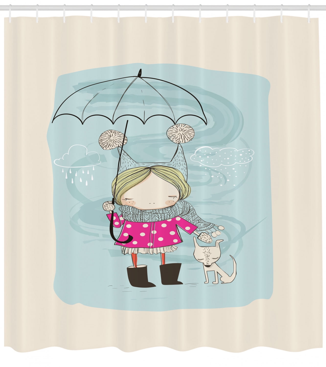 Weusfun Cute Kids Shower Curtain White Background Heavy Duty