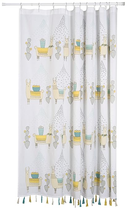 Llamarama tea towels and apron. At what height should a shower curtain be installed. Danica studio collections.