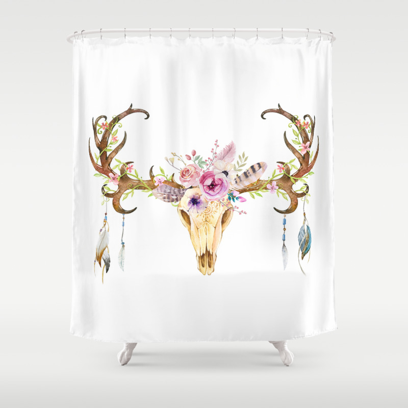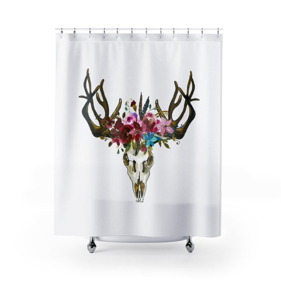Boho Floral Deer Skull Feather Shower Curtain Etsy