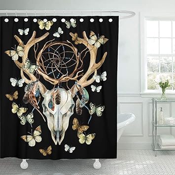 Emvency Decorative Shower Curtain Deer Skulls Flowers And Dream