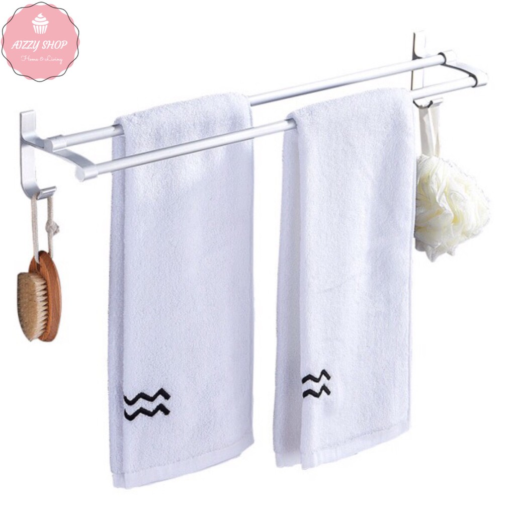 Aizzy Shop Free Punching Double Pole Towel Rack Hanger For