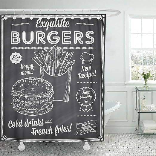 Amazon Com Semtomn Shower Curtain Chalkboard Fast Food Elegant
