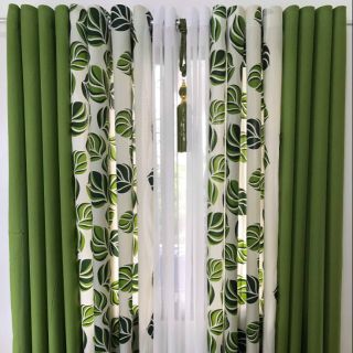 5 In 1 Green Leaves Cotton Ring Curtains Shopee Philippines