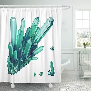 Amazon Com Tompop Shower Curtain 3d Render Emerald Green Crystal