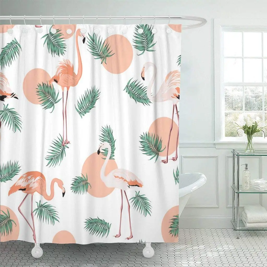 Bathroom Mat Waterproof Fabric Tropical Jungle Flamingo Bird