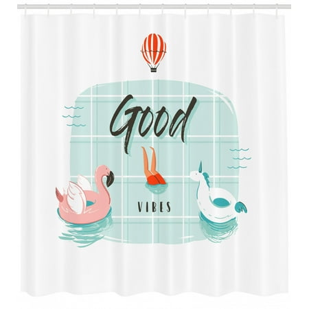 Good Vibes Shower Curtain Pink Flamingo And Unicorn Buoy Ring In