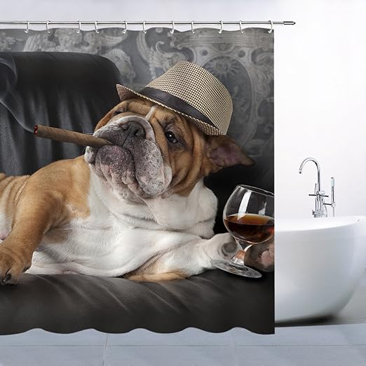 Amazon Com Amfd Funny Dog Shower Curtain Cute Pet Brown Bulldog