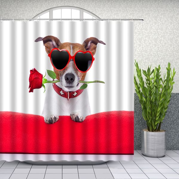 2019 Funny Pet Dog Shower Curtains Red Rose Flower Cute Anima