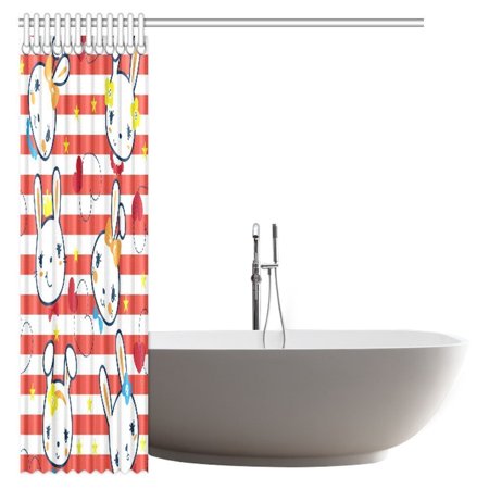 Pop Kids Decor Shower Curtain Cartoon Cute Little Rabbit Girl