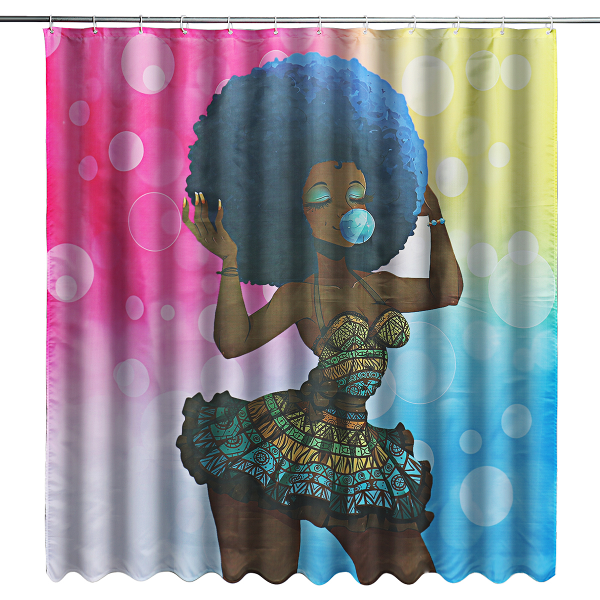 180x180cm Waterproof Shower Curtain 12 Hooks 3pcs African Girl