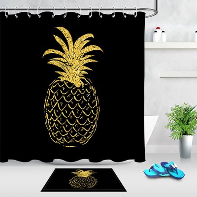 Waterproof Fabric Golden Pineapple Black Backdrop Shower Curtain