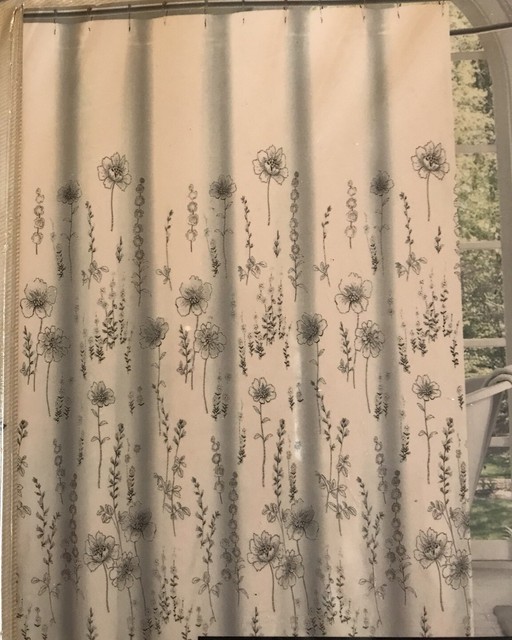Cynthia Rowley French Flower Fabric Shower Curtain Dark Gray Gray