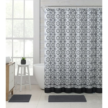 Tahari Home Luxurious Fabric Shower Curtain Printemps 2 Gray And