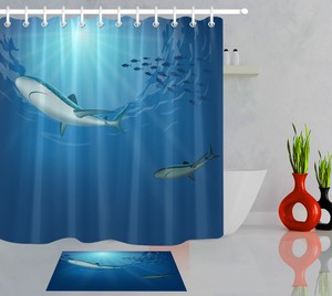 Waterproof Mexico Great White Shark Shower Curtain Set Bathroom
